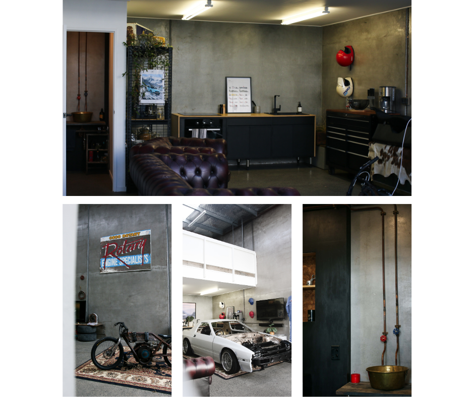 We crafted an interior that merges mid century warmth with cooler industrial textures, layered with motorsport and automotive moments honouring family history. Featuring a completely custom bathroom and kitchen. Bespoke, durable and unique.